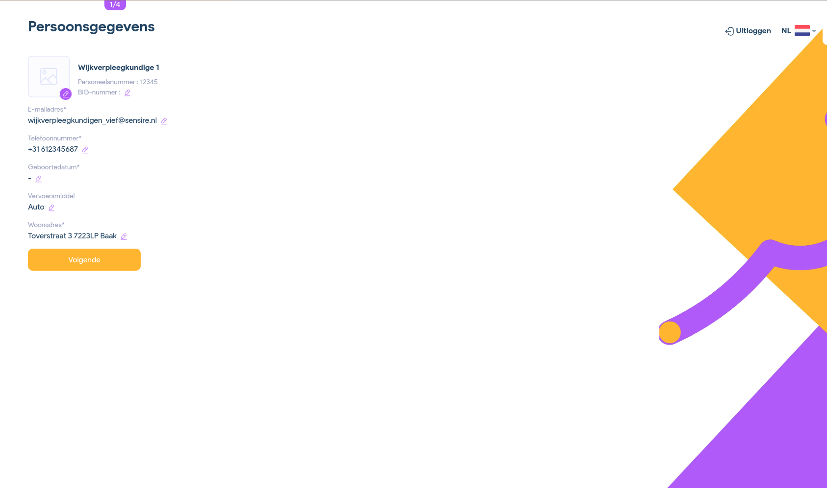 Als je bent ingelogd op de website, krijg je jouw persoonlijke gegevens te zien. Controleer goed of deze correct zijn ingevuld, en pas aan indien nodig (zie afbeelding hieronder).