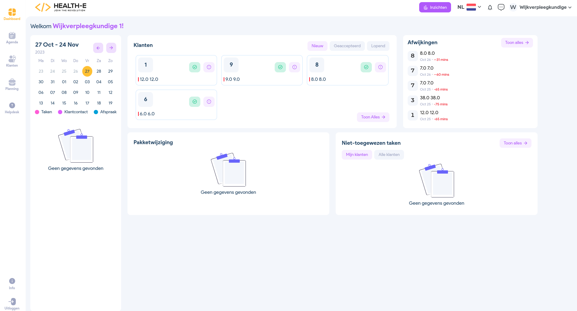 Zodra een klant een zorgpakket heeft en je de planning hebt bevestigd, komt de klant in de weergave "Mijn cliënten" te staan. Ook hier kun je het zorgpakket van een klant aanpassen. Daarnaast kun je een klant uit zorg plaatsen, bijvoorbeeld als de klant geen zorg meer nodig heeft.